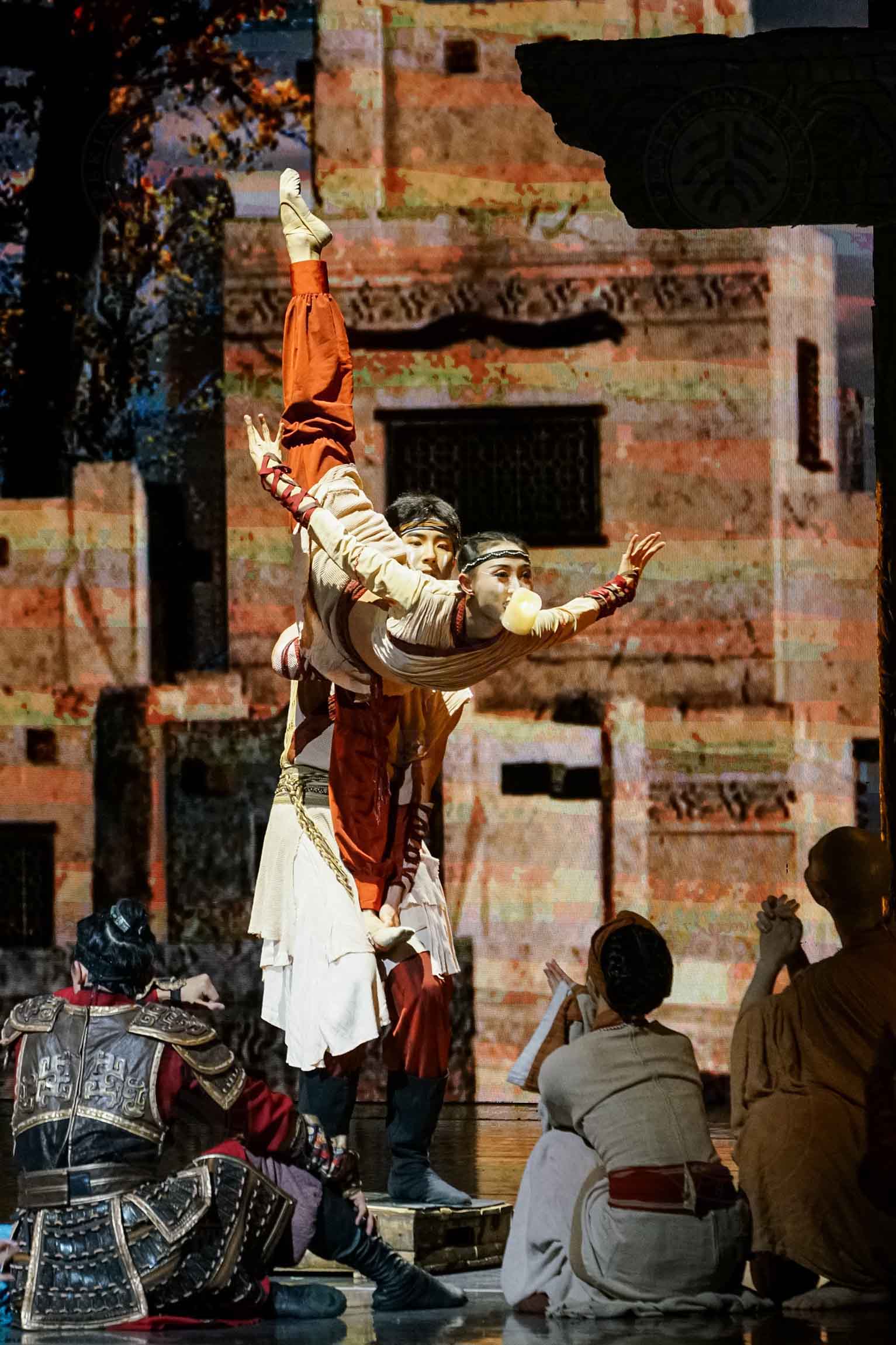 舞剧再现了汉朝戍边将领奉与北人首领之子建特、精绝首领之女春君几经变故,化干戈为玉帛,从剑拔弩张到并肩携手的动人故事。