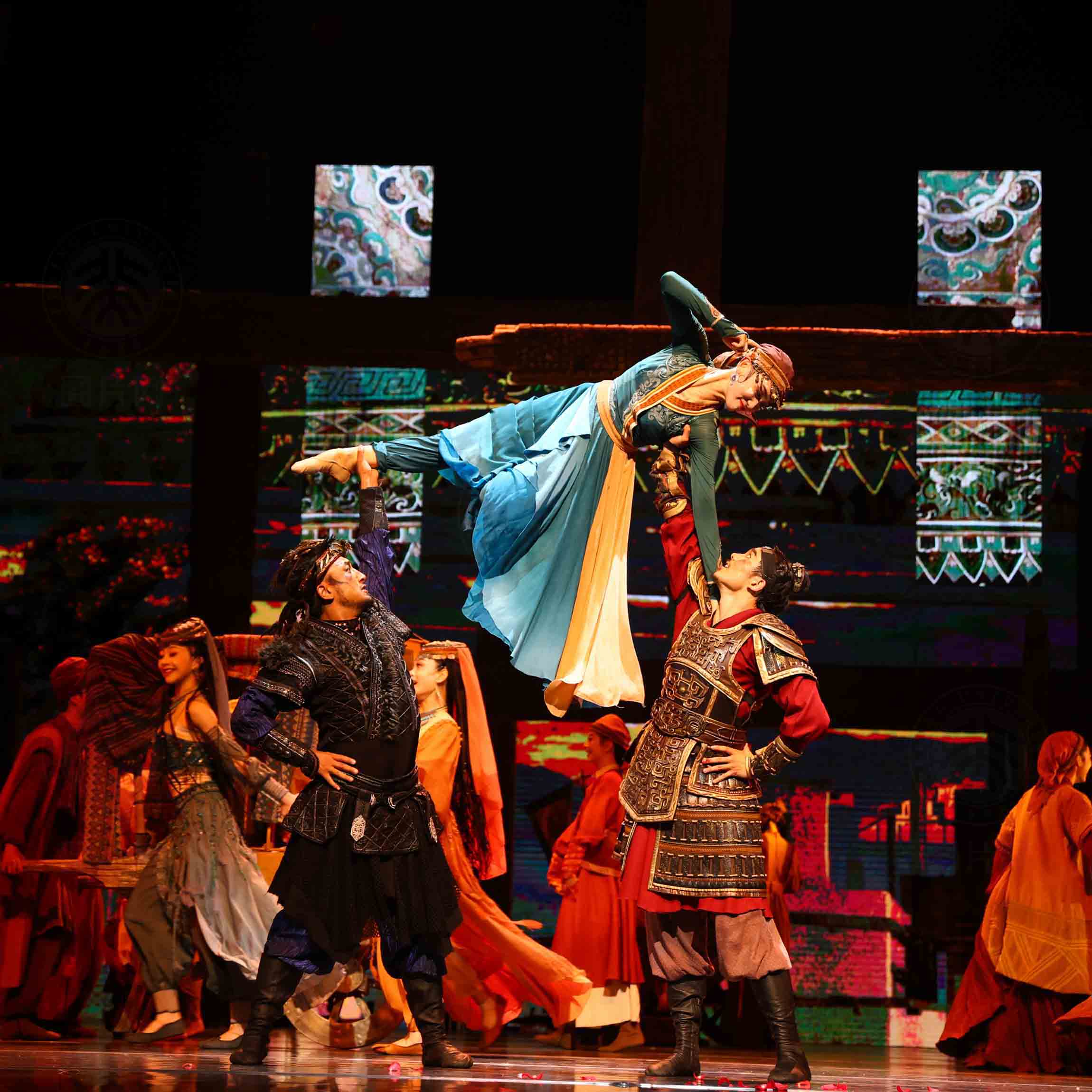 舞蹈动作自克孜尔石窟的“伎乐天人”壁画和汉代陶俑的姿态中汲取了灵感,一颦一笑,皆是西域风情;衣袂飘舞,尽是大国气度。