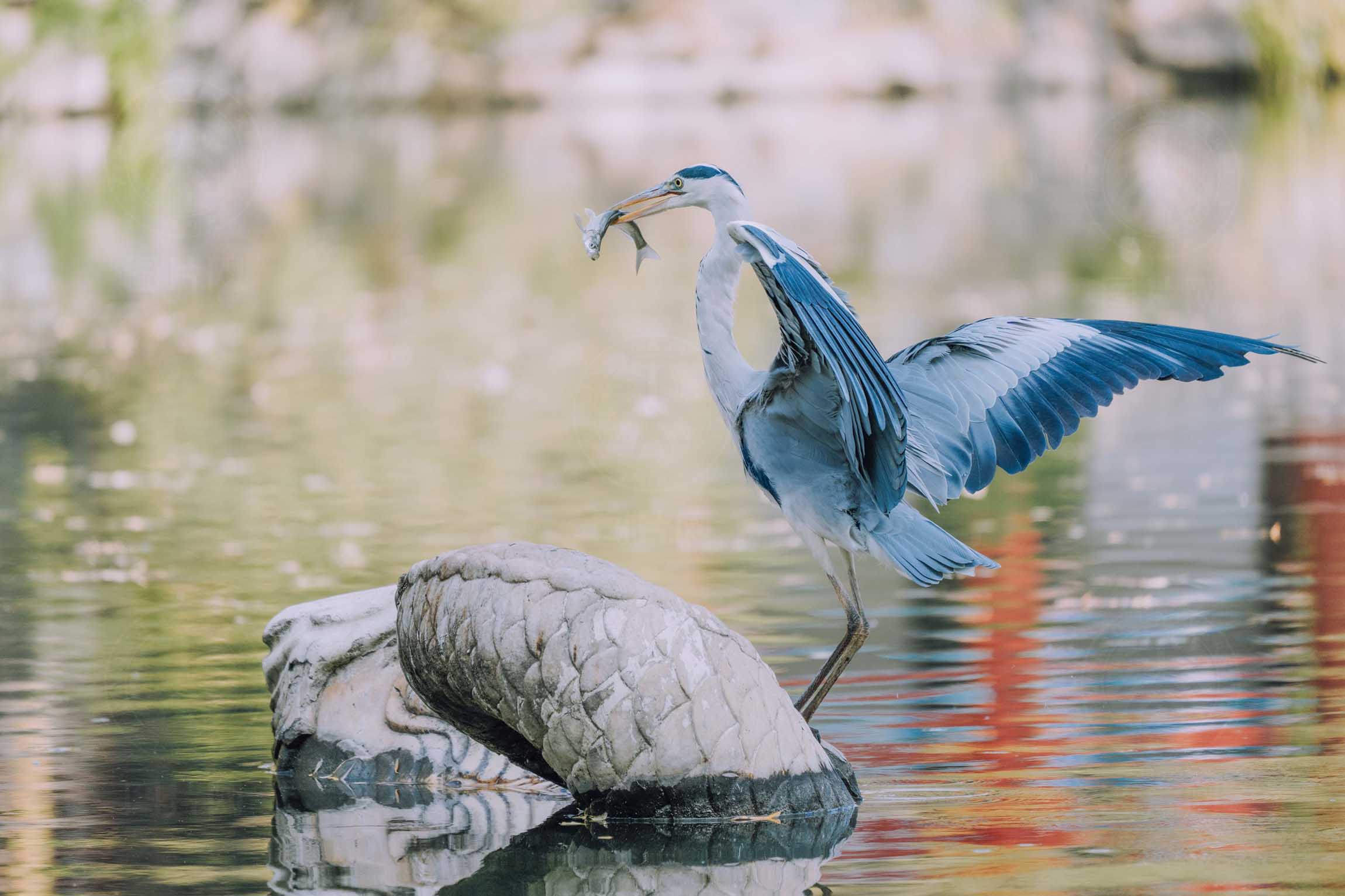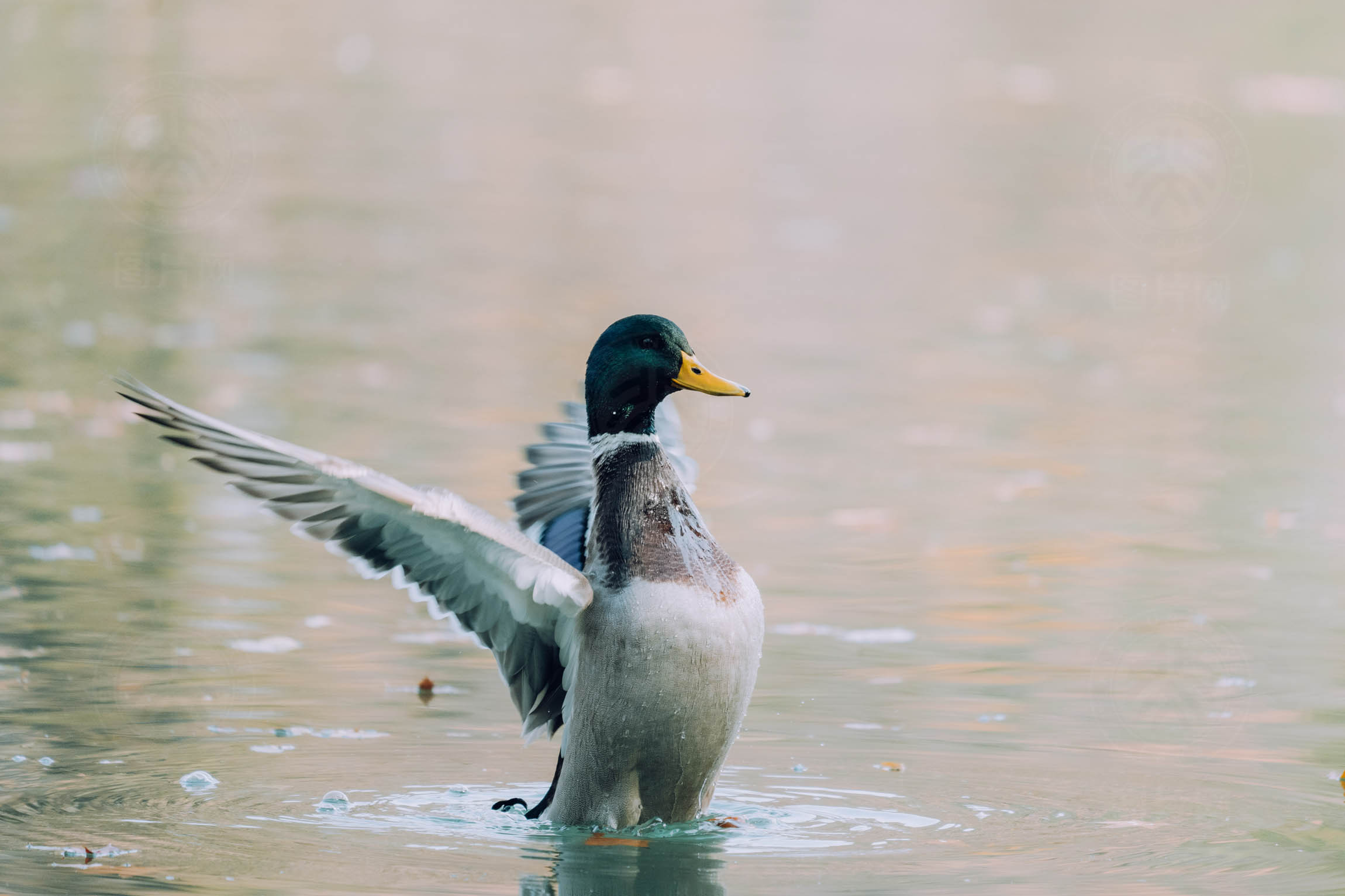 浩气展虹霓,玉面磨新镜。舒凫闲展翅,游人听风吟。