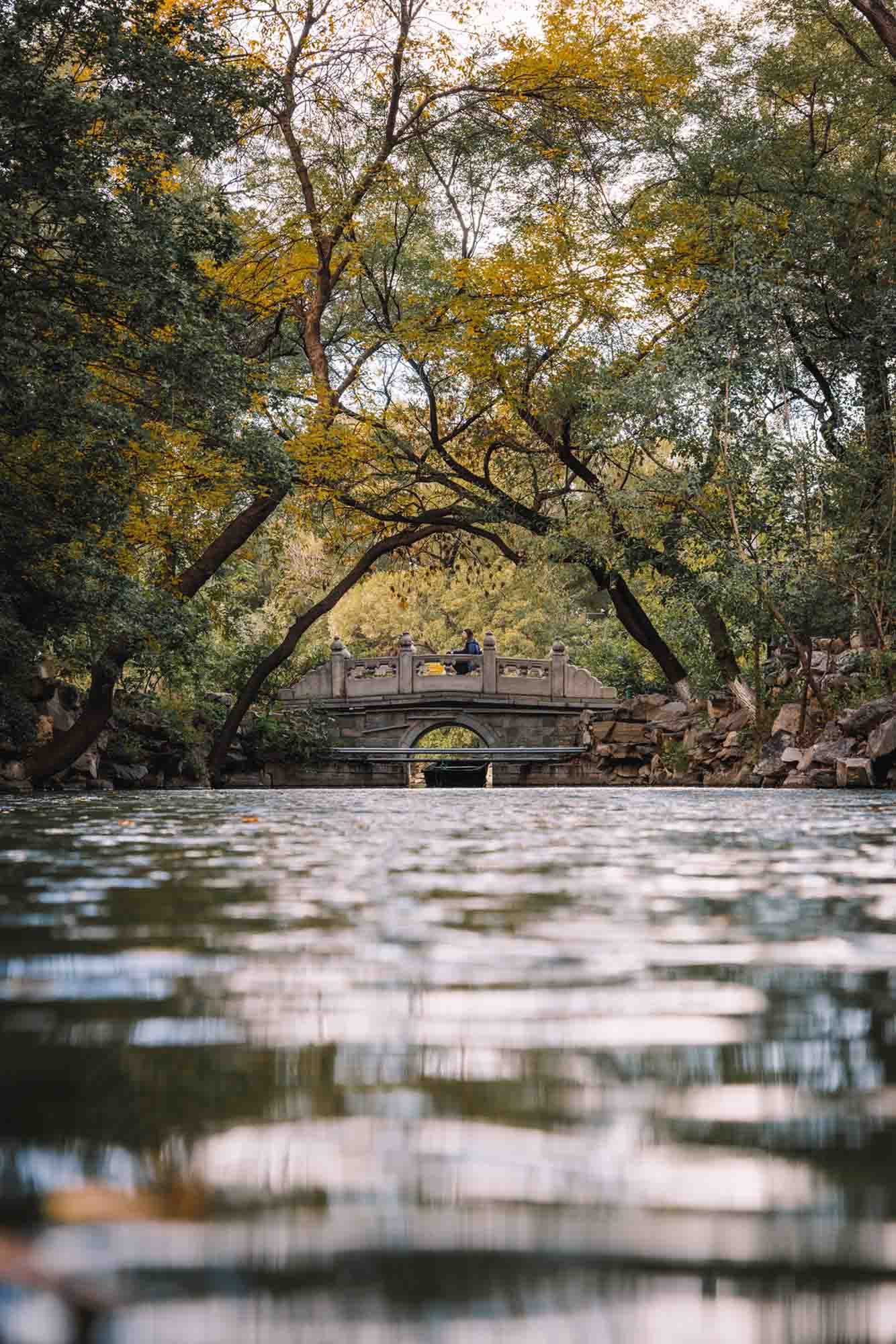 石桥与小潭无声对视,听着人来人往,数着几度秋凉。