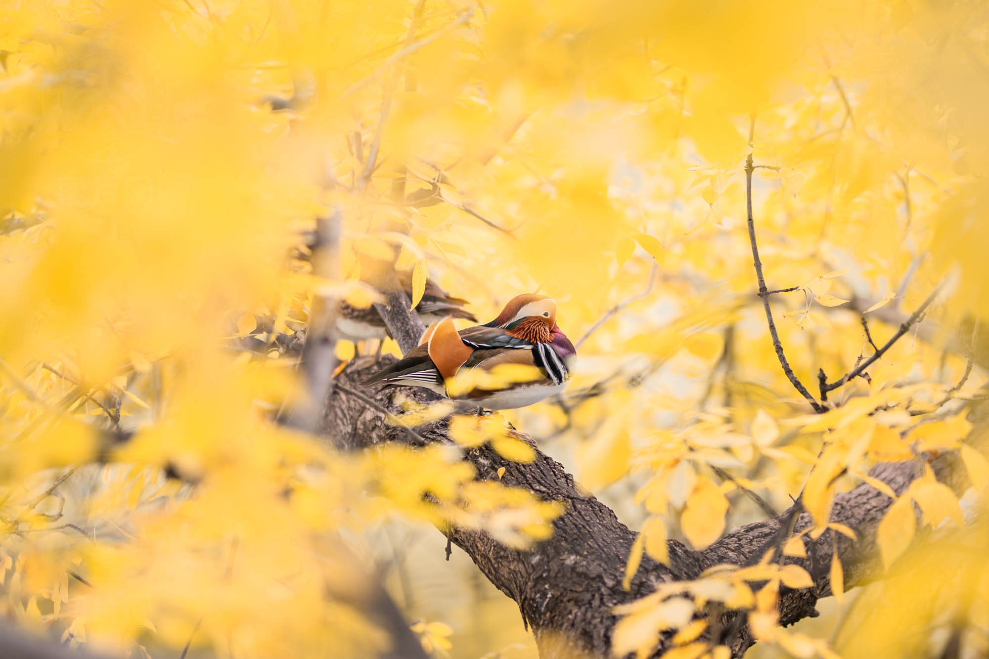 声声鸳鸯和鸣隐没在树梢枝头,那是秋天的歌。