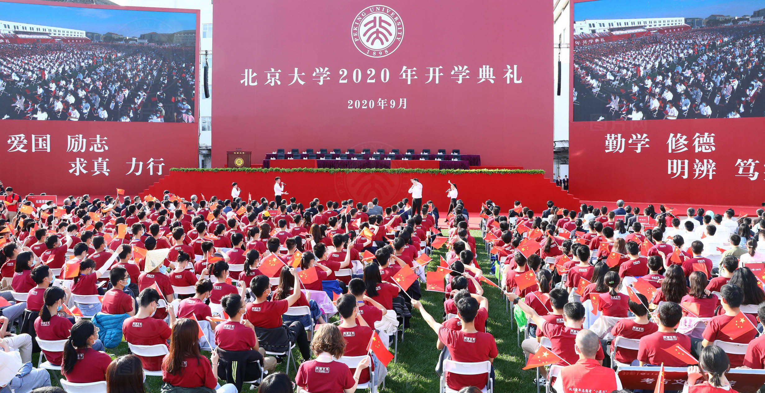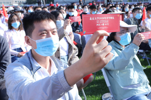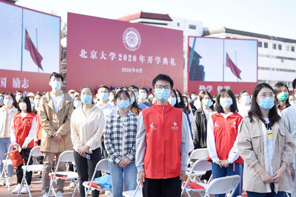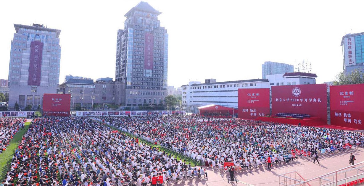 金秋九月,丹桂飘香,2020年9月20日,北京大学2020年开学典礼在五四田径场隆重举行。白色的椅子整齐地码放在绿荫场上,不一样的草坪开学典礼,彰显了不平凡的2020,这一天,本科、硕士和博士的全体新生们眉角带笑,相遇在新的人生起点上。