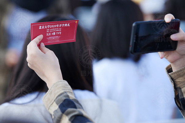 开学典礼入场券是经典的北大红,这一抹颜色在绿茵场的映衬下格外耀眼。