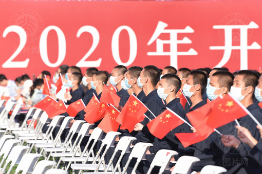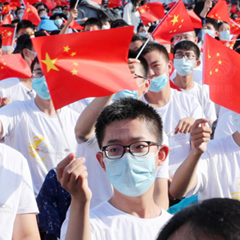 冉冉升起的五星红旗,激昂奋进的国歌曲调,新学期第一次升旗仪式让新生再一次向祖国庄严承诺。