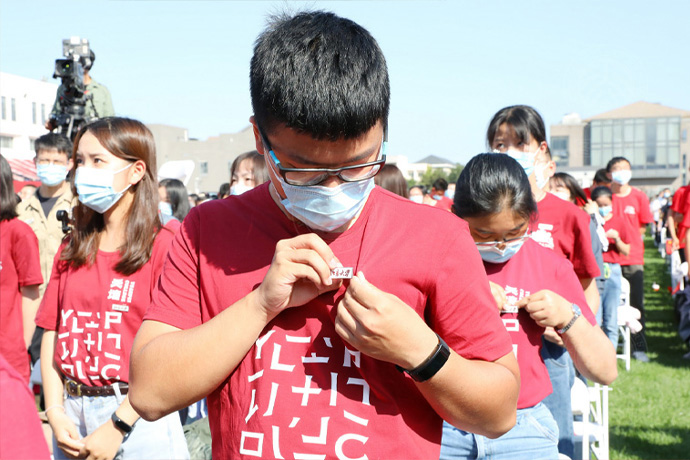 郑重地佩戴上北大校徽,从此拥有了共同的名字“北大人”。