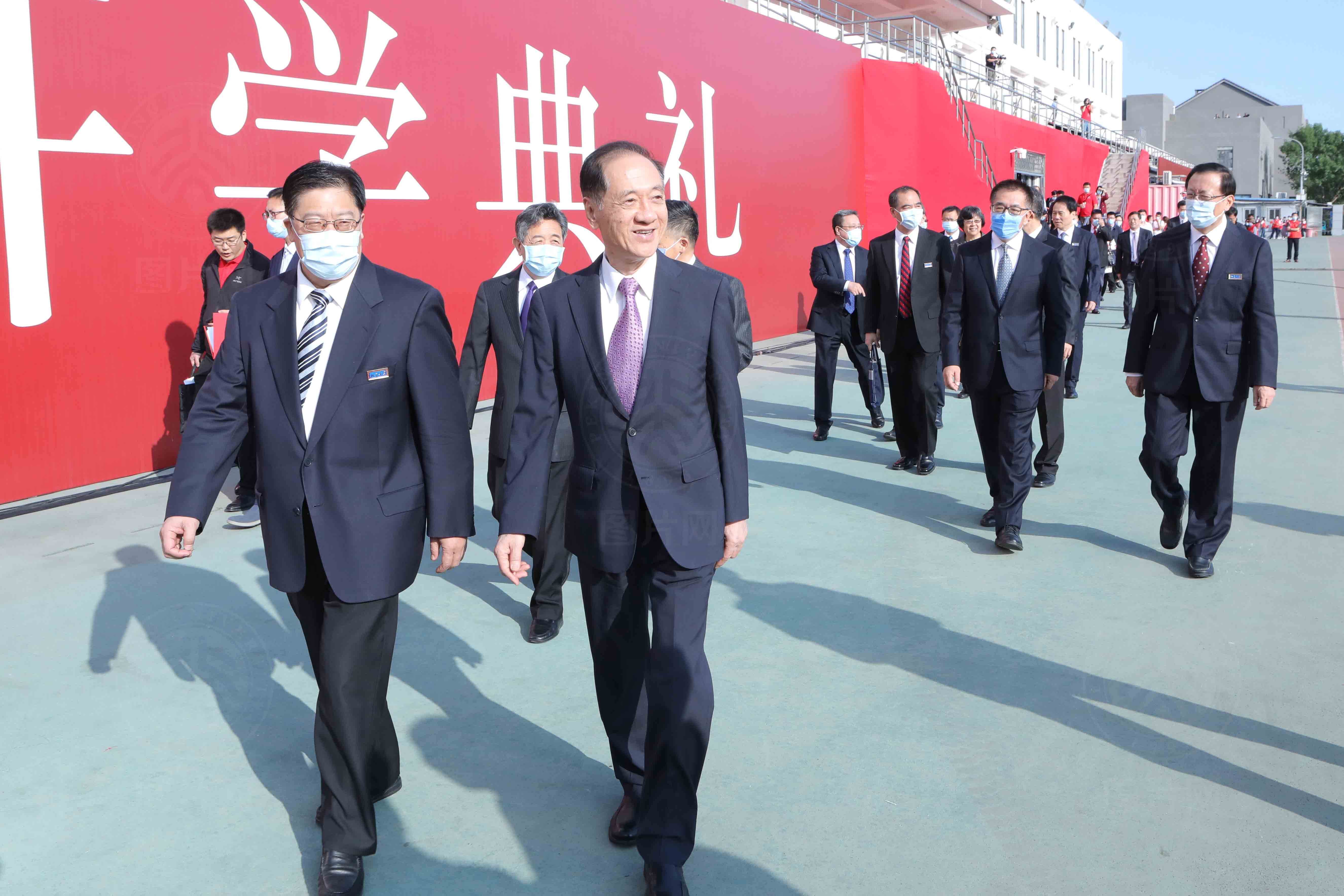 校领导和老师们一同迎接新同学们的到来。
